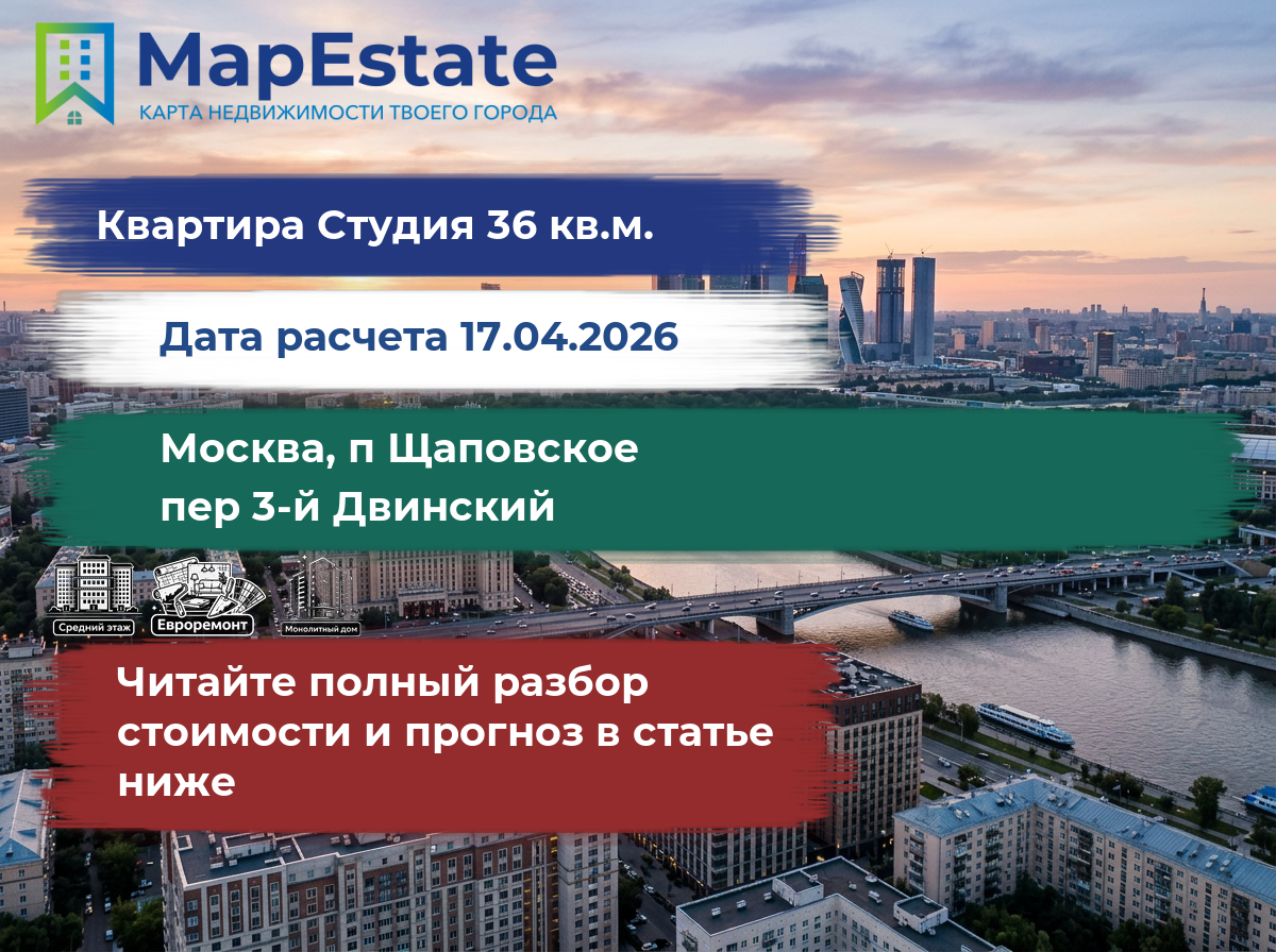 Сколько стоит квартира 36 м² в москва, п щаповское, пер 3-й двинский?