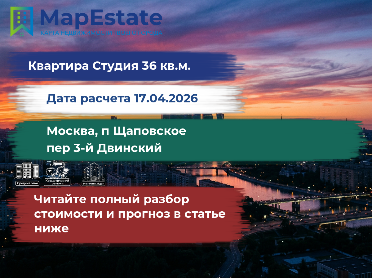 Сколько стоит квартира 36 м² в москва, п щаповское, пер 3-й двинский?