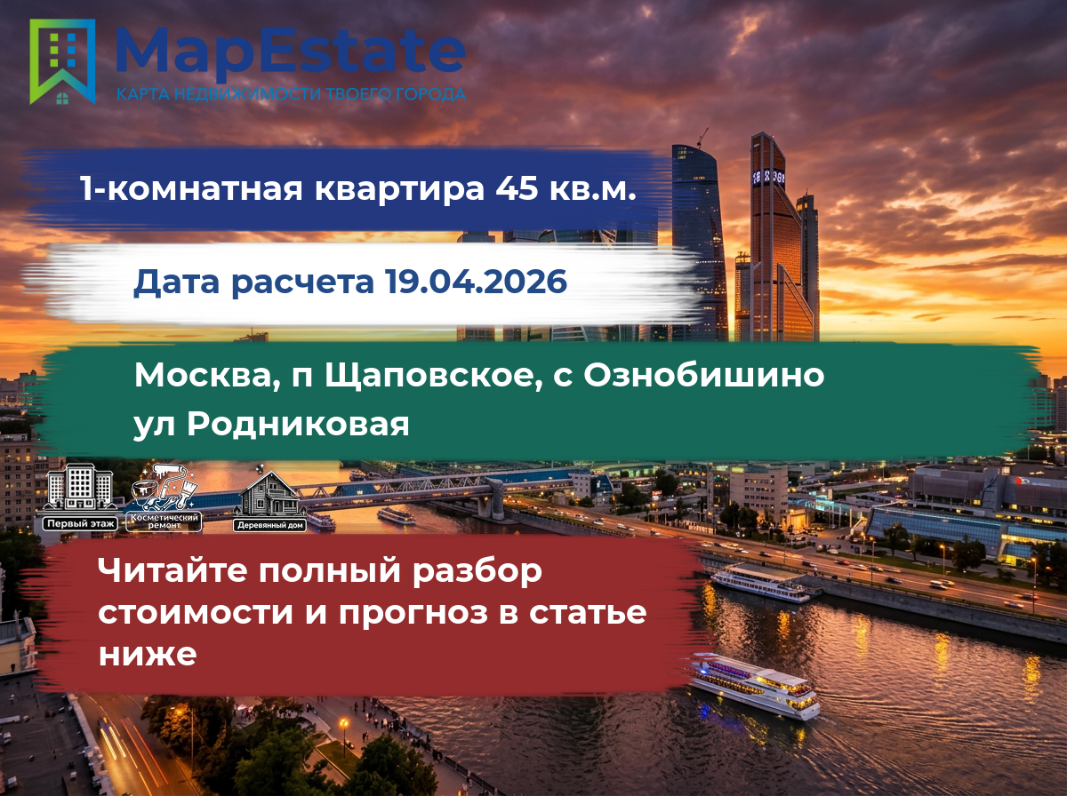 Сколько стоит квартира 45 м² в москва, п щаповское, с ознобишино, ул родниковая?