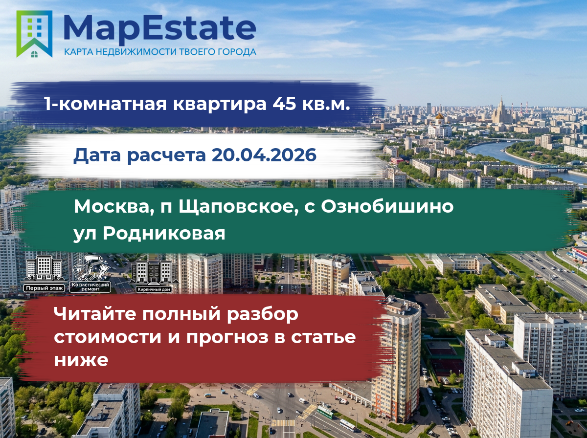 Сколько стоит квартира 45 м² в москва, п щаповское, с ознобишино, ул родниковая?