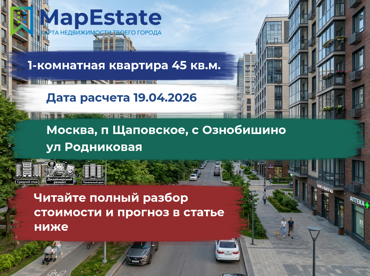 Сколько стоит квартира 45 м² в москва, п щаповское, с ознобишино, ул родниковая?