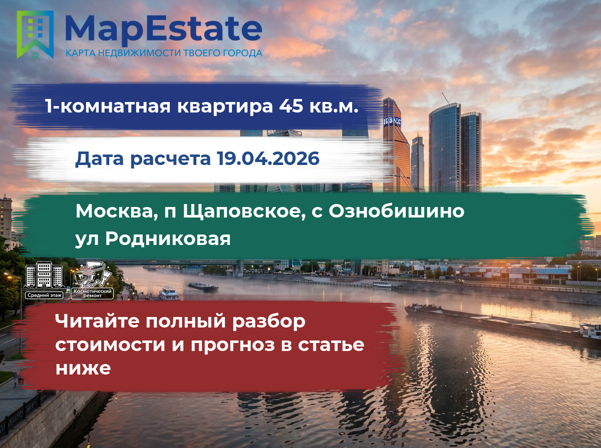 Сколько стоит квартира 45 м² в москва, п щаповское, с ознобишино, ул родниковая?