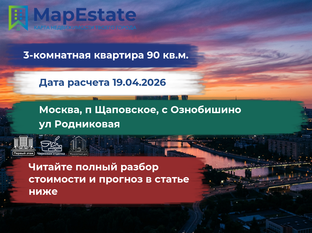 Сколько стоит квартира 90 м² в москва, п щаповское, с ознобишино, ул родниковая?