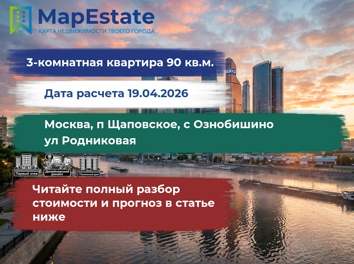 Сколько стоит квартира 90 м² в москва, п щаповское, с ознобишино, ул родниковая?