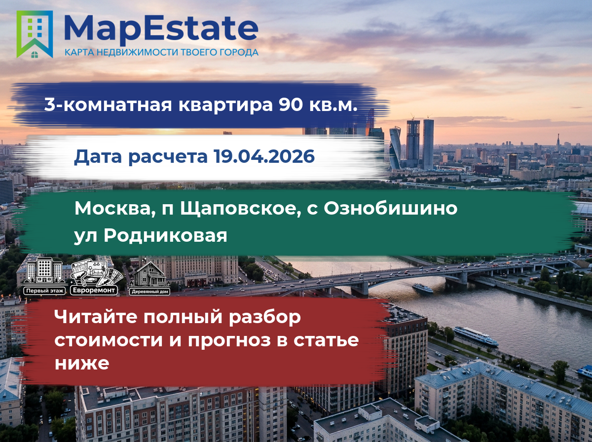 Сколько стоит квартира 90 м² в москва, п щаповское, с ознобишино, ул родниковая?