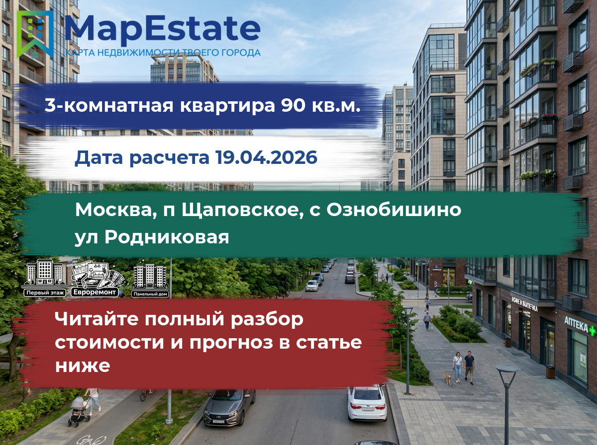 Сколько стоит квартира 90 м² в москва, п щаповское, с ознобишино, ул родниковая?