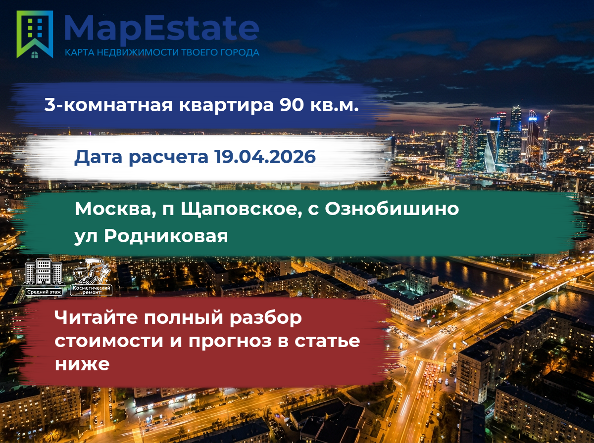 Сколько стоит квартира 90 м² в москва, п щаповское, с ознобишино, ул родниковая?