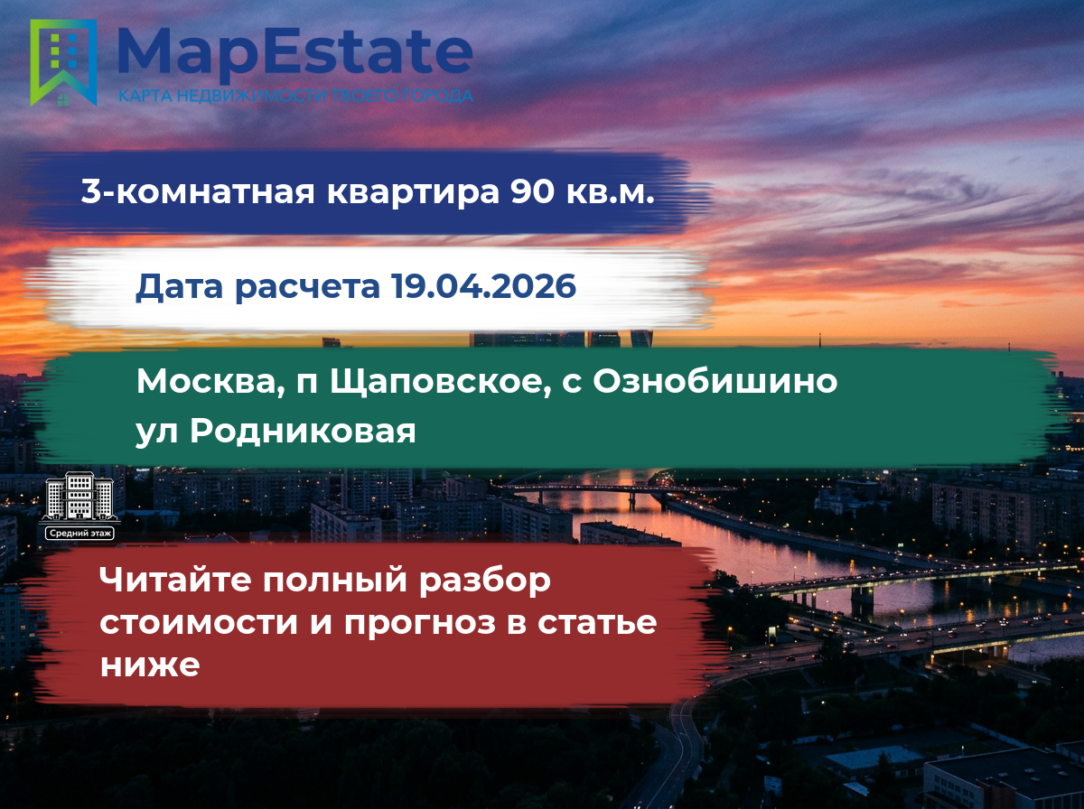 Сколько стоит квартира 90 м² в москва, п щаповское, с ознобишино, ул родниковая?