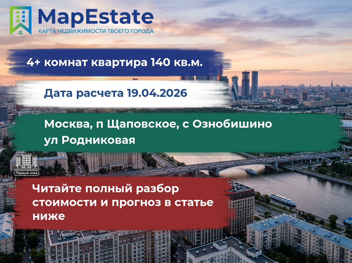 Квартира площадью 140 м² формата 4+ комнат на москва, п щаповское, с ознобишино, ул родниковая относится к распространённым объектам жилой недвижимости.