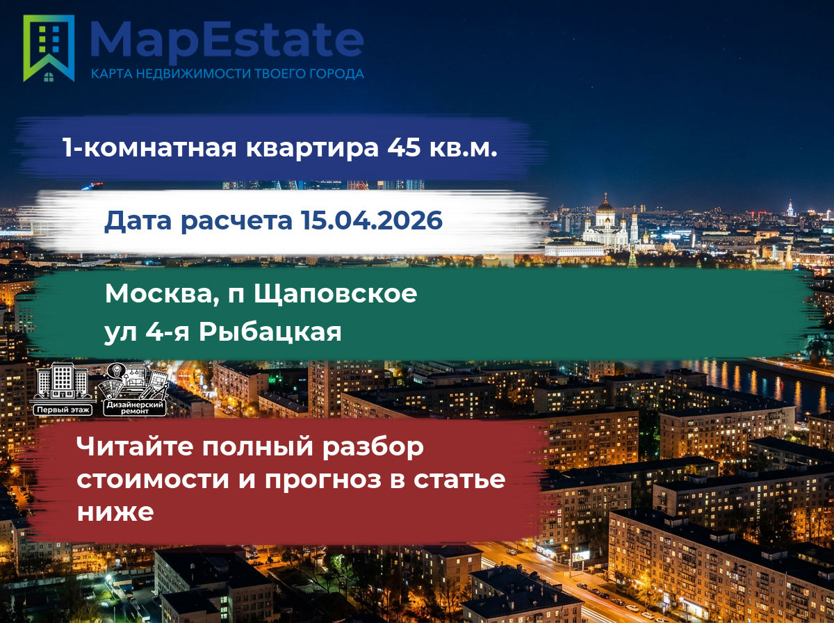 Сколько стоит квартира 45 м² в москва, п щаповское, ул 4-я рыбацкая?