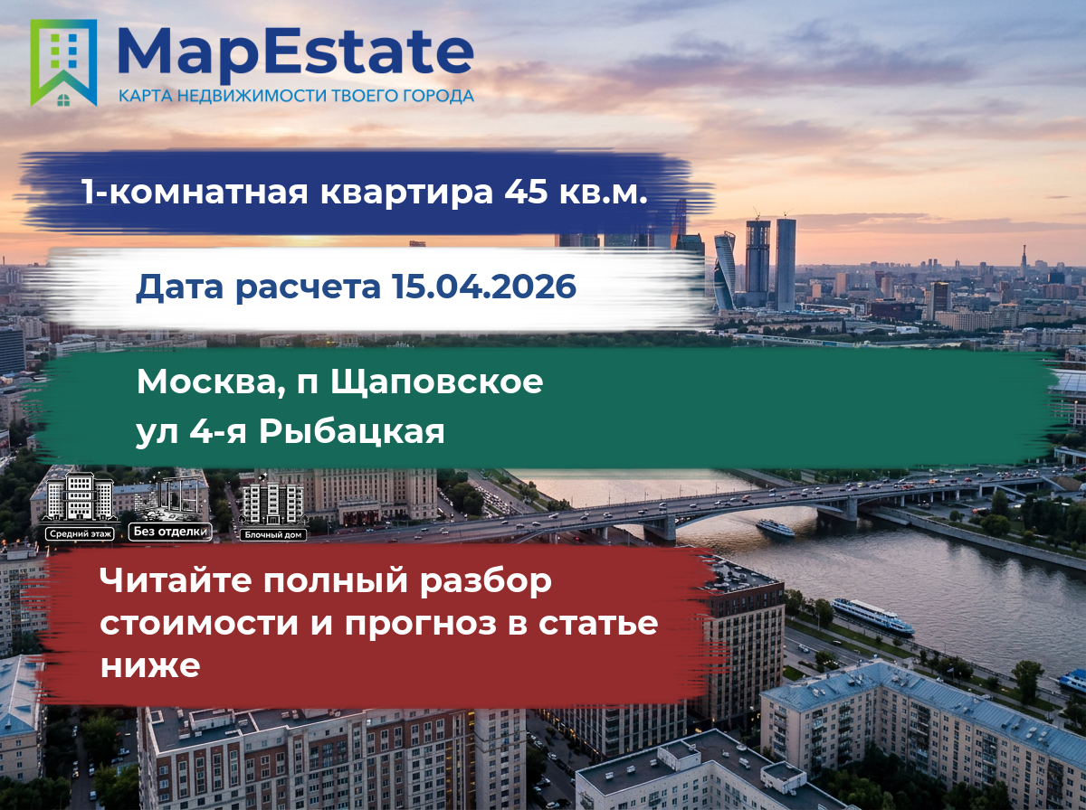 Сколько стоит квартира 45 м² в москва, п щаповское, ул 4-я рыбацкая?