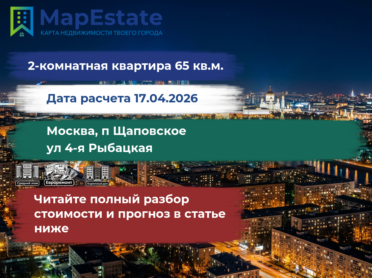 Сколько стоит квартира 65 м² в москва, п щаповское, ул 4-я рыбацкая?