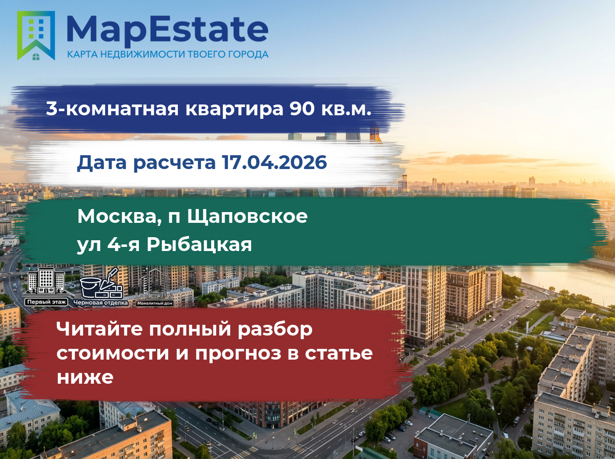 Сколько стоит квартира 90 м² в москва, п щаповское, ул 4-я рыбацкая?