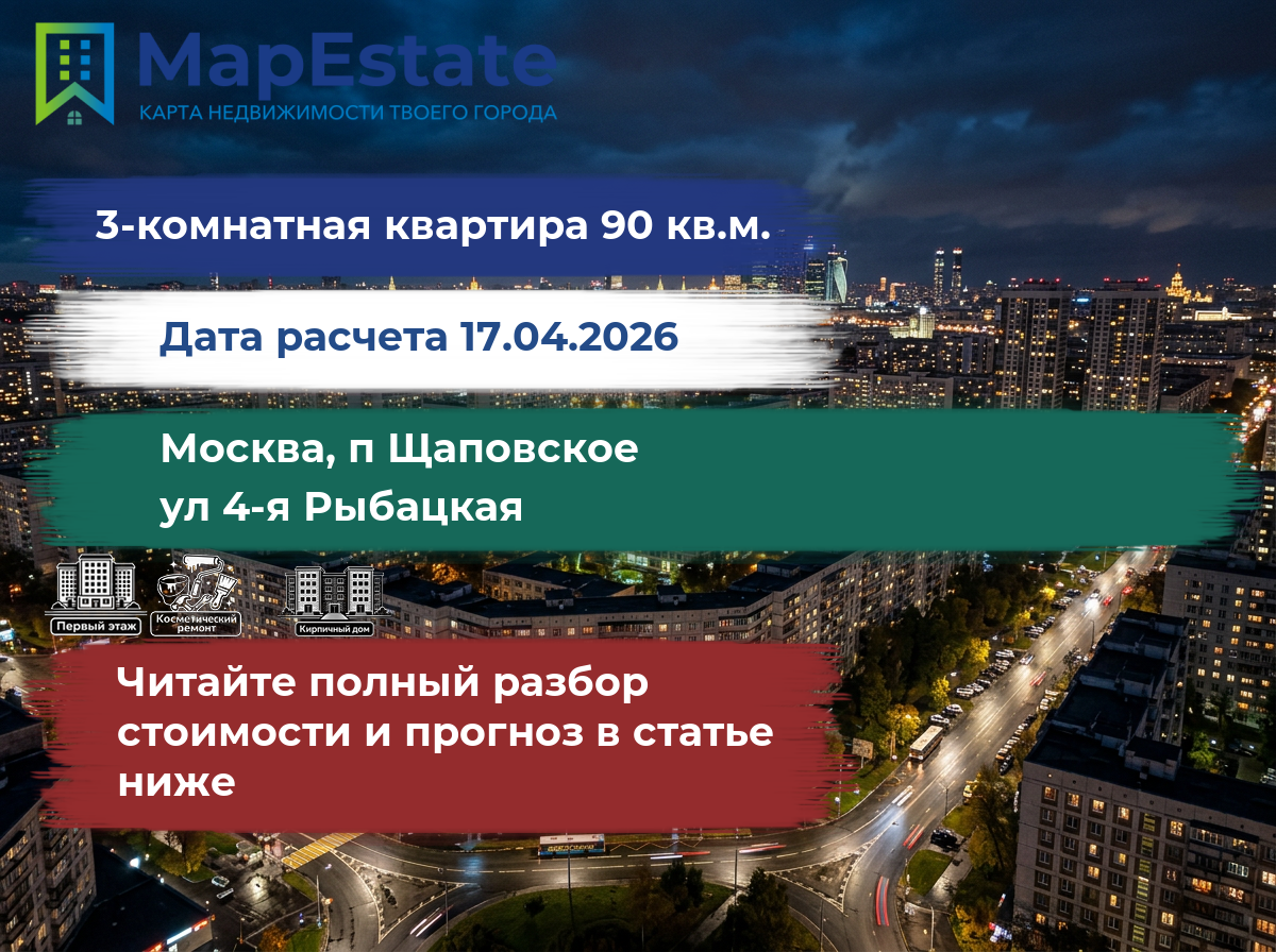 Сколько стоит квартира 90 м² в москва, п щаповское, ул 4-я рыбацкая?