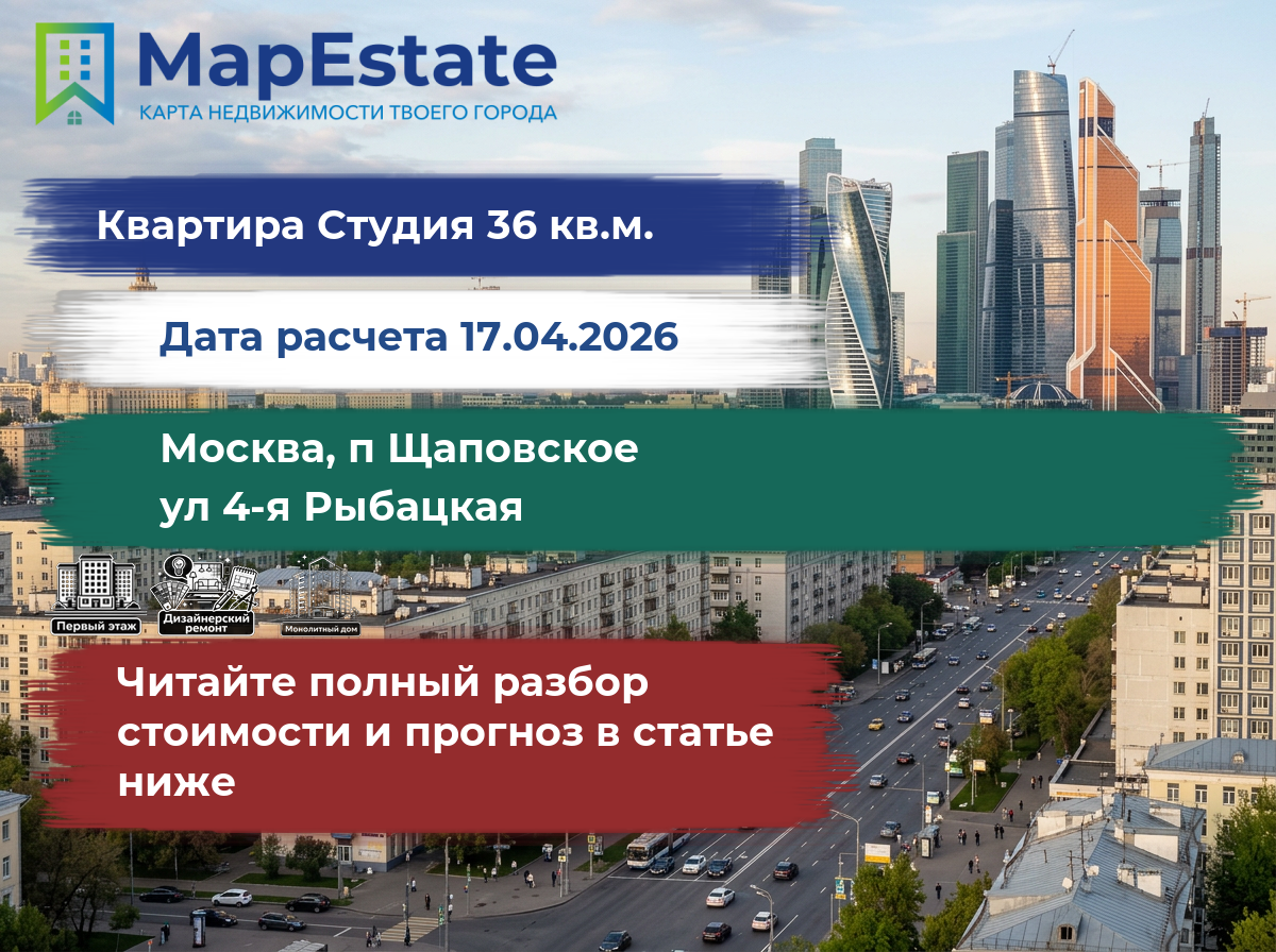 Сколько стоит квартира 36 м² в москва, п щаповское, ул 4-я рыбацкая?