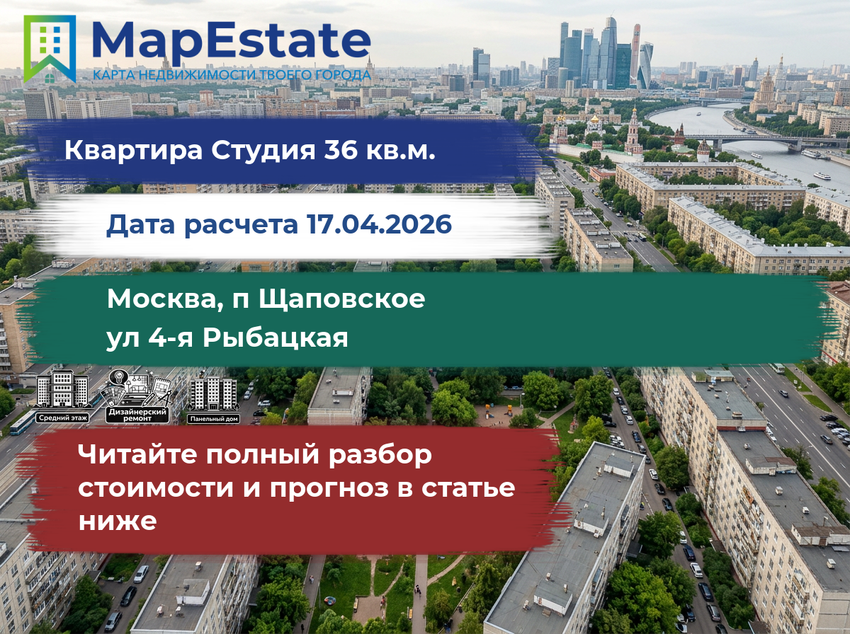 Сколько стоит квартира 36 м² в москва, п щаповское, ул 4-я рыбацкая?