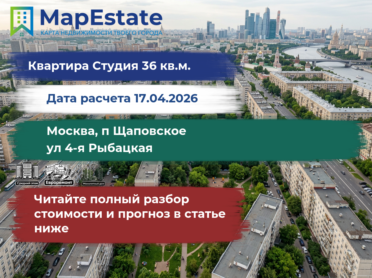 Сколько стоит квартира 36 м² в москва, п щаповское, ул 4-я рыбацкая?