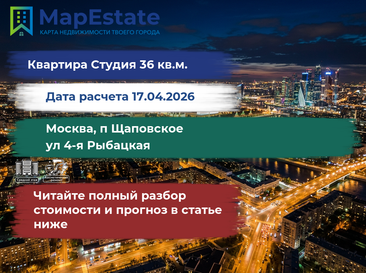Сколько стоит квартира 36 м² в москва, п щаповское, ул 4-я рыбацкая?