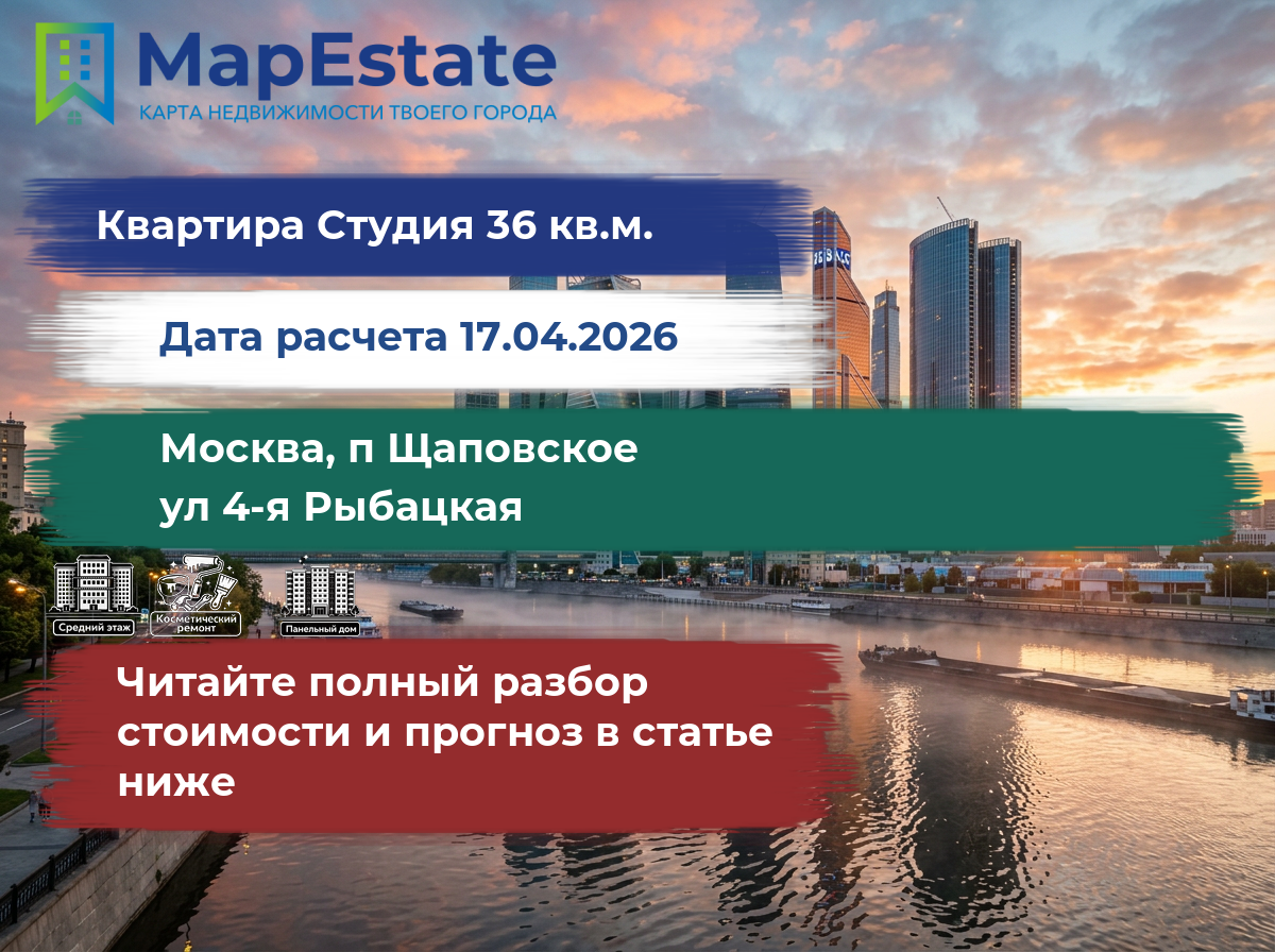 Сколько стоит квартира 36 м² в москва, п щаповское, ул 4-я рыбацкая?