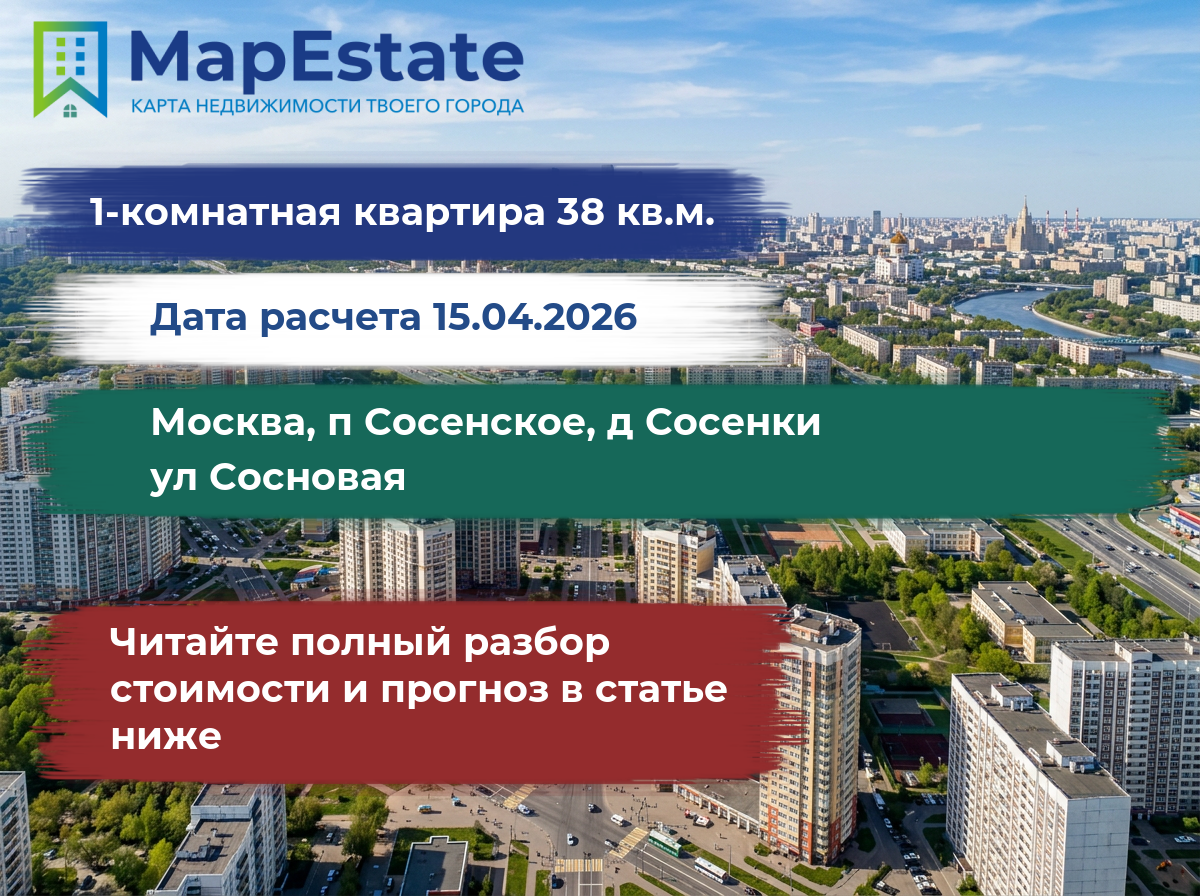 Сколько стоит квартира 38 м² в москва, п сосенское, д сосенки, ул сосновая?