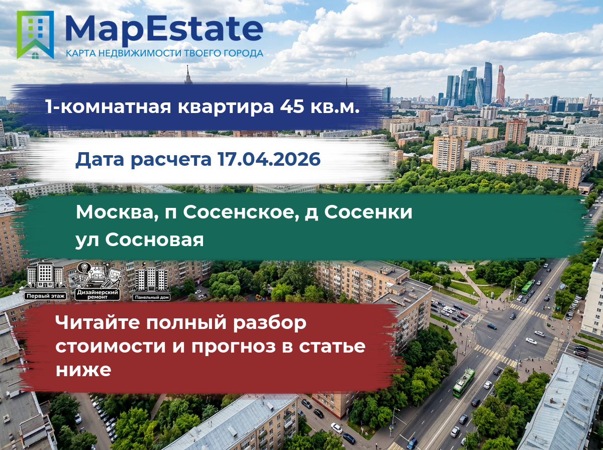 Сколько стоит квартира 45 м² в москва, п сосенское, д сосенки, ул сосновая?