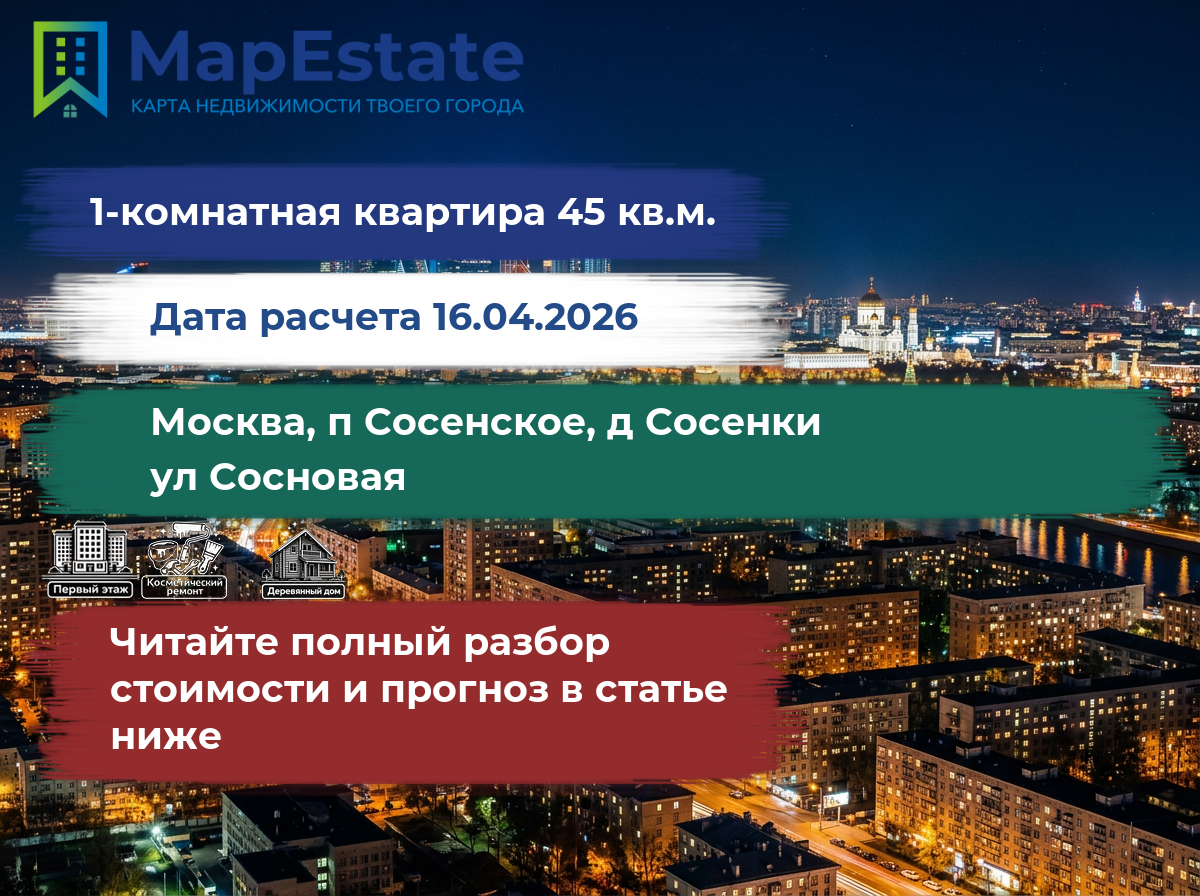 Сколько стоит квартира 45 м² в москва, п сосенское, д сосенки, ул сосновая?