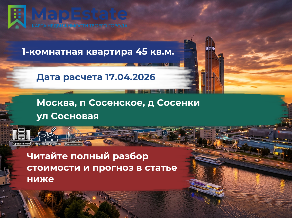 Сколько стоит квартира 45 м² в москва, п сосенское, д сосенки, ул сосновая?