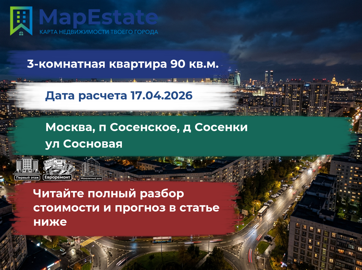 Сколько стоит квартира 90 м² в москва, п сосенское, д сосенки, ул сосновая?