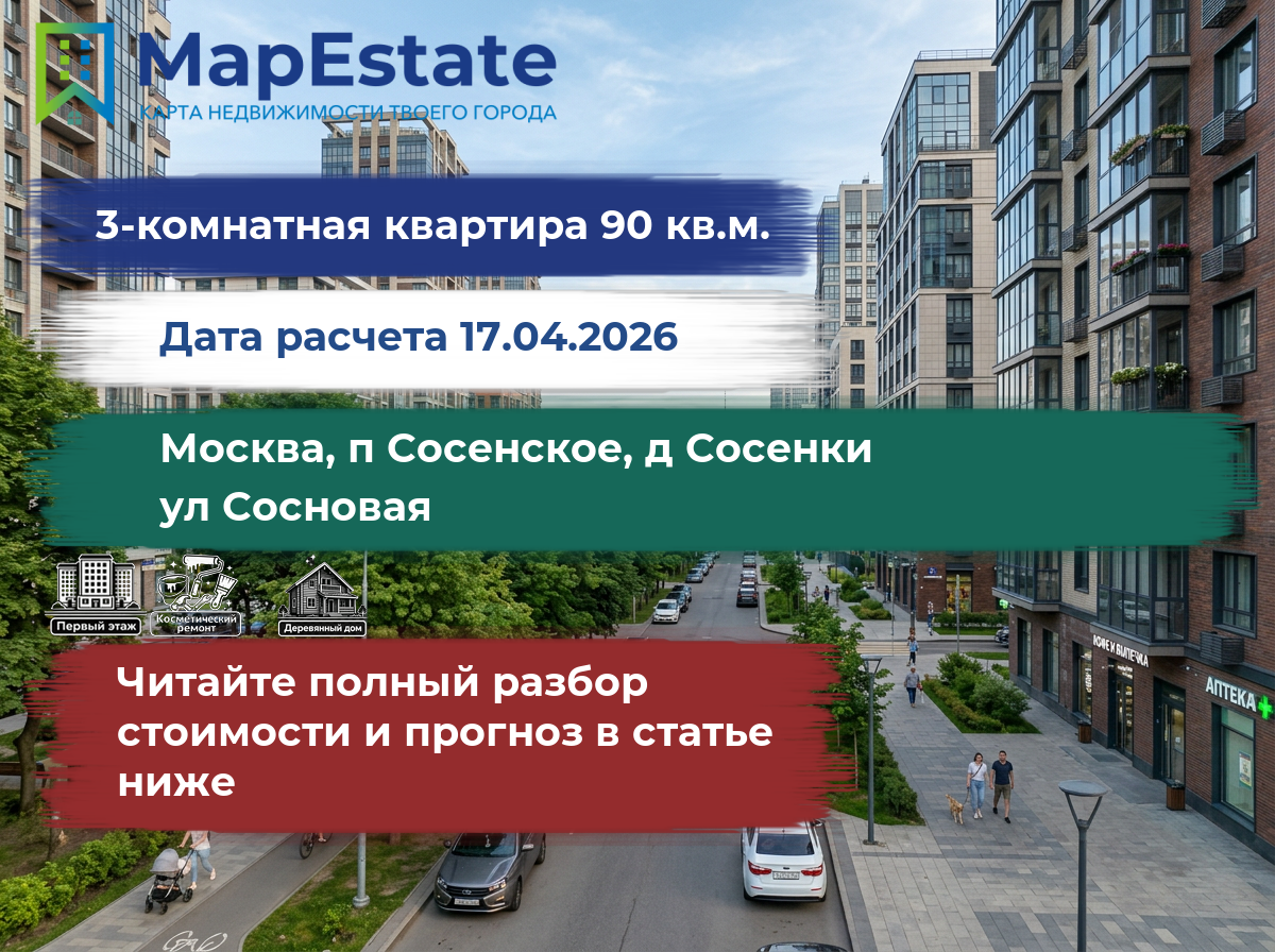 Сколько стоит квартира 90 м² в москва, п сосенское, д сосенки, ул сосновая?