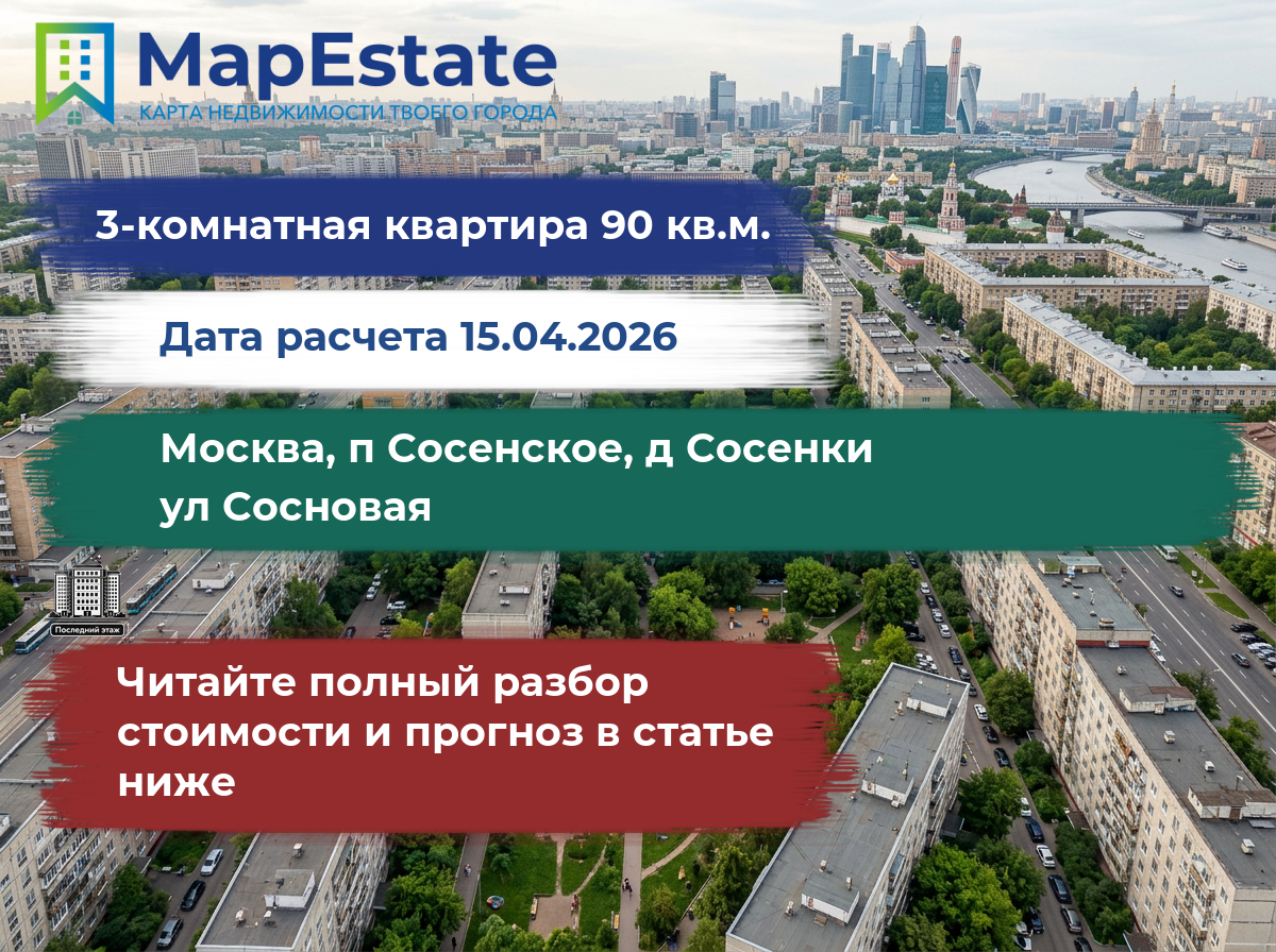Сколько стоит квартира 90 м² в москва, п сосенское, д сосенки, ул сосновая?