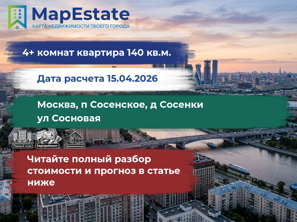 Сколько стоит квартира 140 м² в москва, п сосенское, д сосенки, ул сосновая?