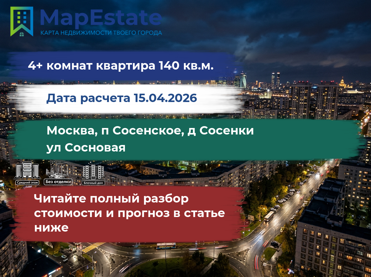 Сколько стоит квартира 140 м² в москва, п сосенское, д сосенки, ул сосновая?