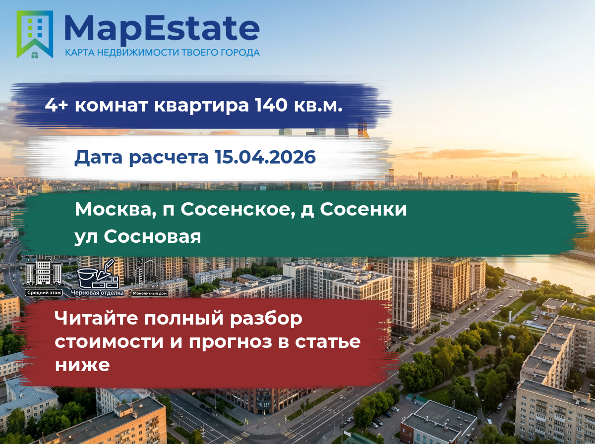Сколько стоит квартира 140 м² в москва, п сосенское, д сосенки, ул сосновая?