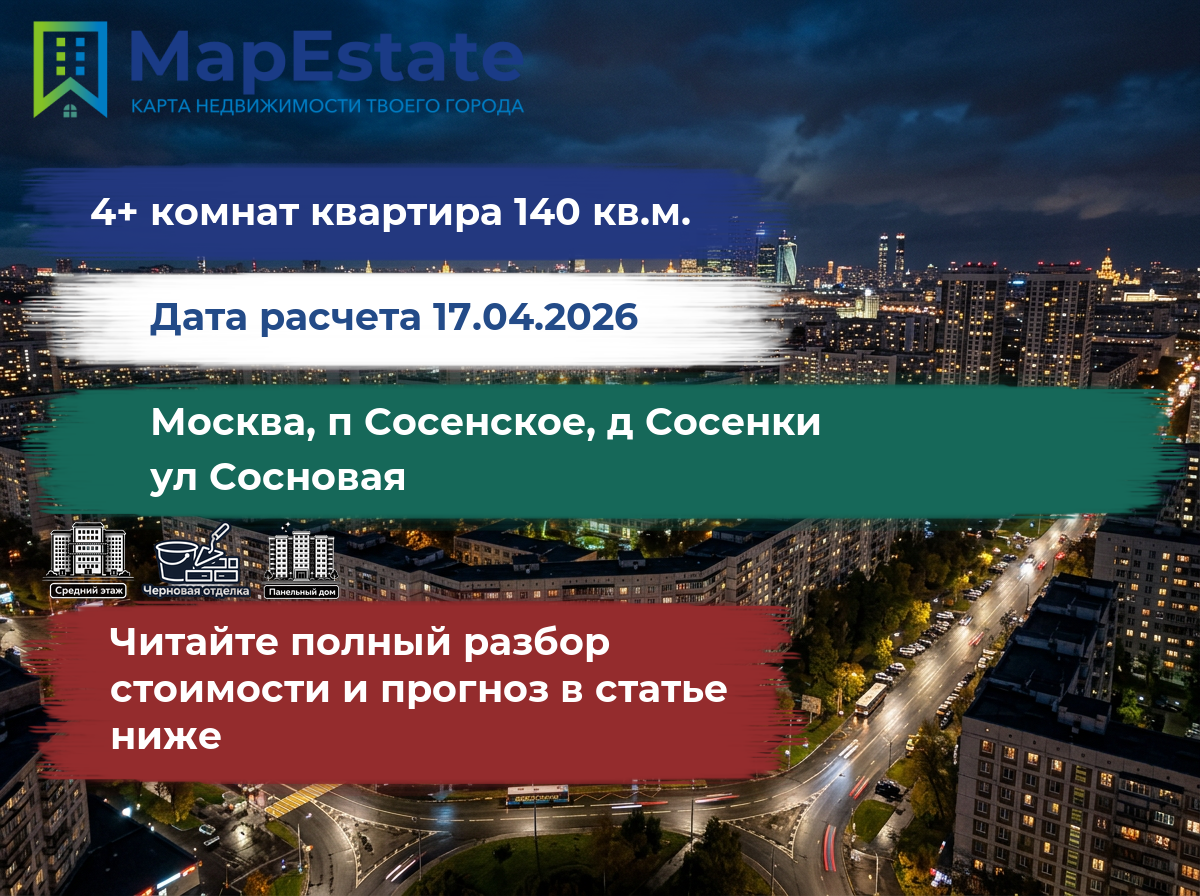 Сколько стоит квартира 140 м² в москва, п сосенское, д сосенки, ул сосновая?