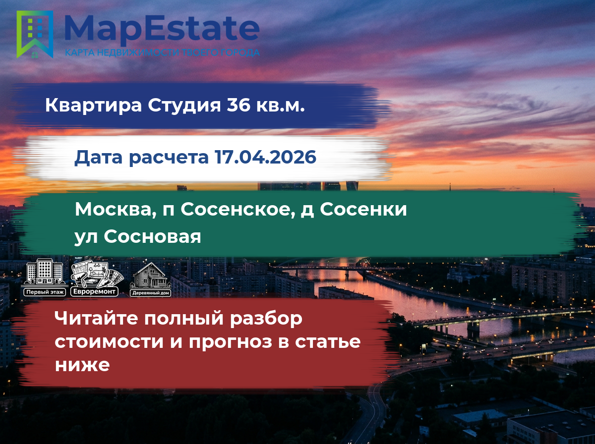 Сколько стоит квартира 36 м² в москва, п сосенское, д сосенки, ул сосновая?