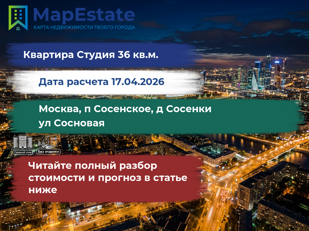 Сколько стоит квартира 36 м² в москва, п сосенское, д сосенки, ул сосновая?