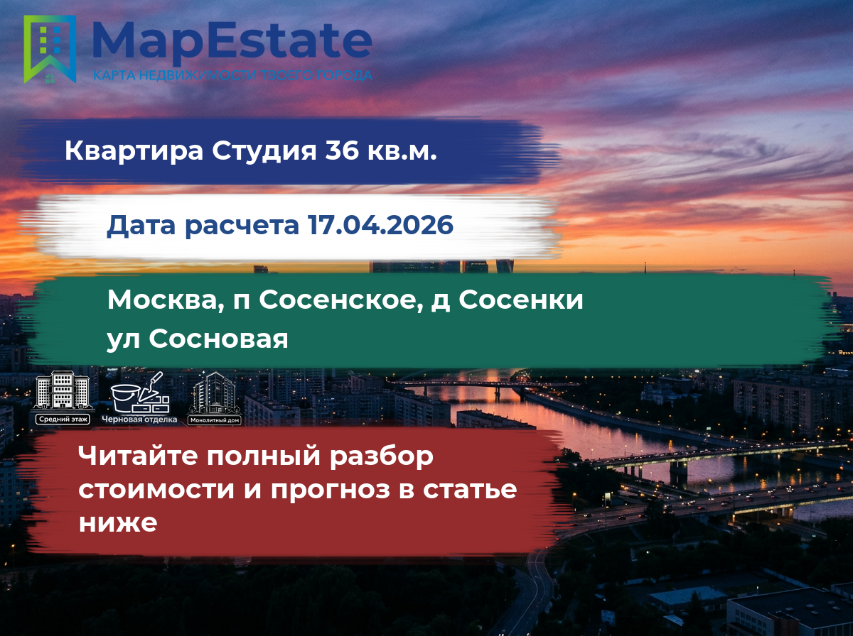 Сколько стоит квартира 36 м² в москва, п сосенское, д сосенки, ул сосновая?