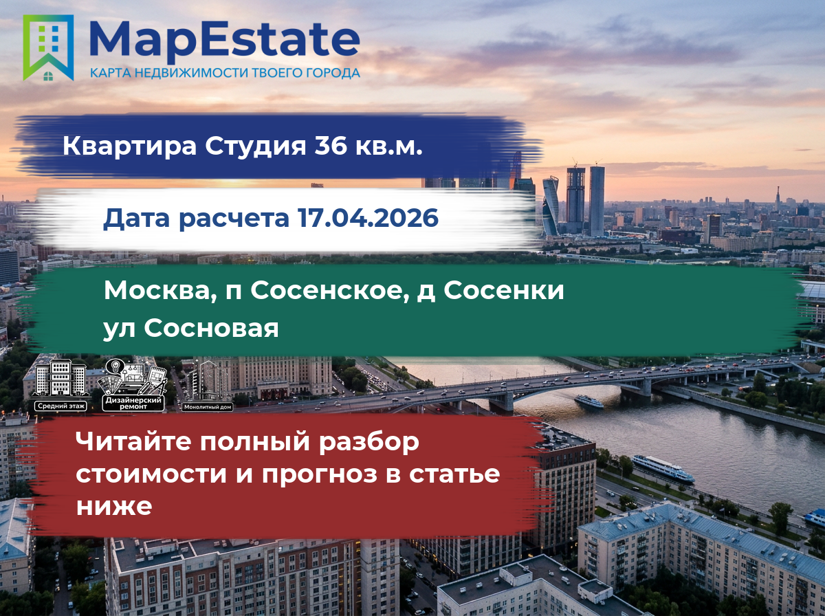 Сколько стоит квартира 36 м² в москва, п сосенское, д сосенки, ул сосновая?