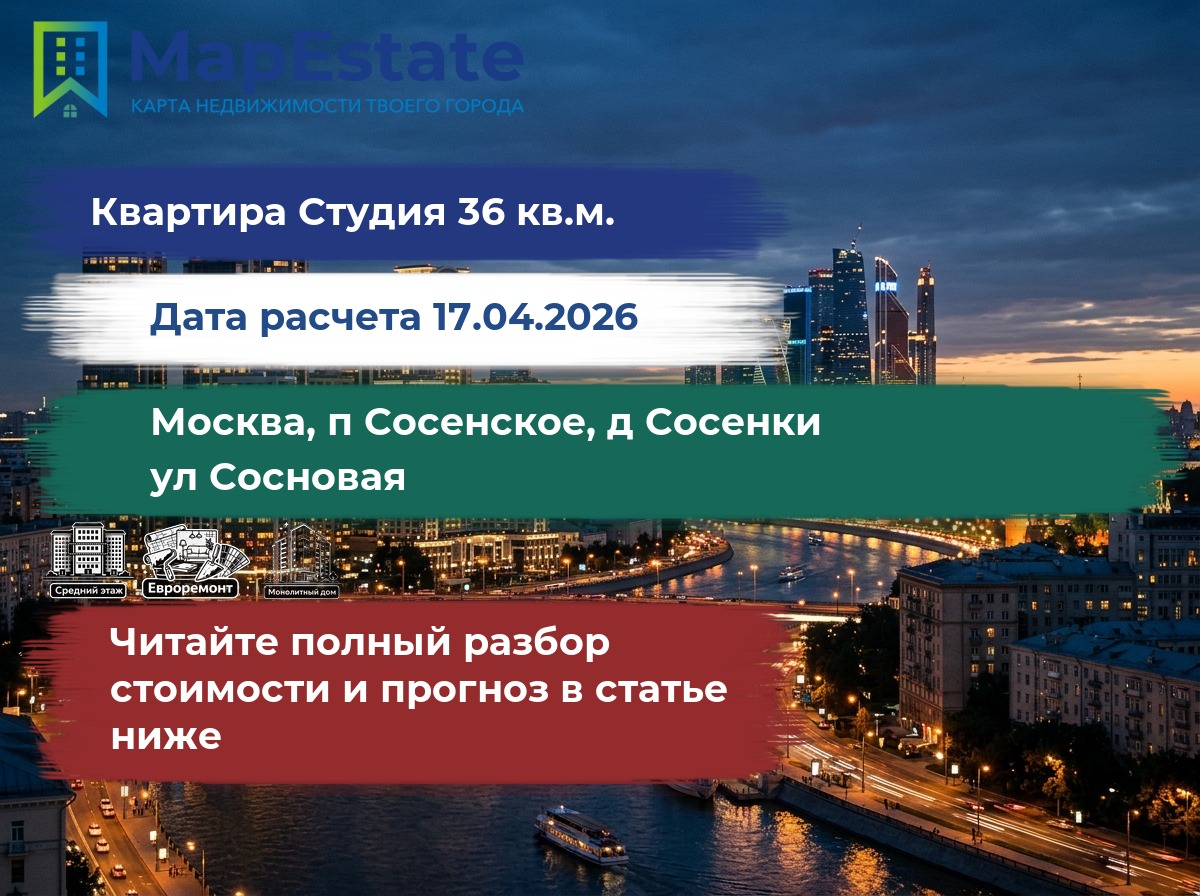 Сколько стоит квартира 36 м² в москва, п сосенское, д сосенки, ул сосновая?