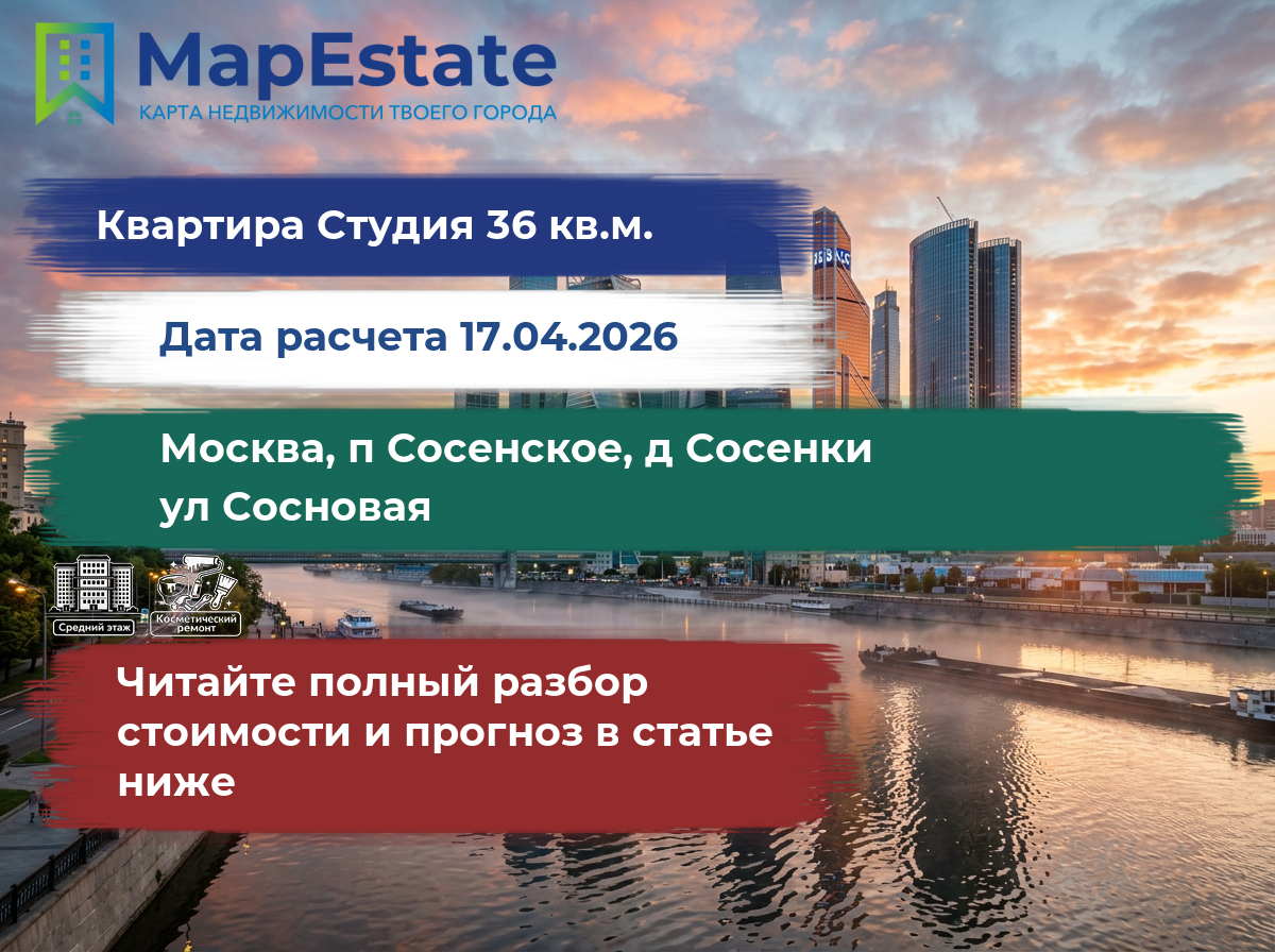Сколько стоит квартира 36 м² в москва, п сосенское, д сосенки, ул сосновая?