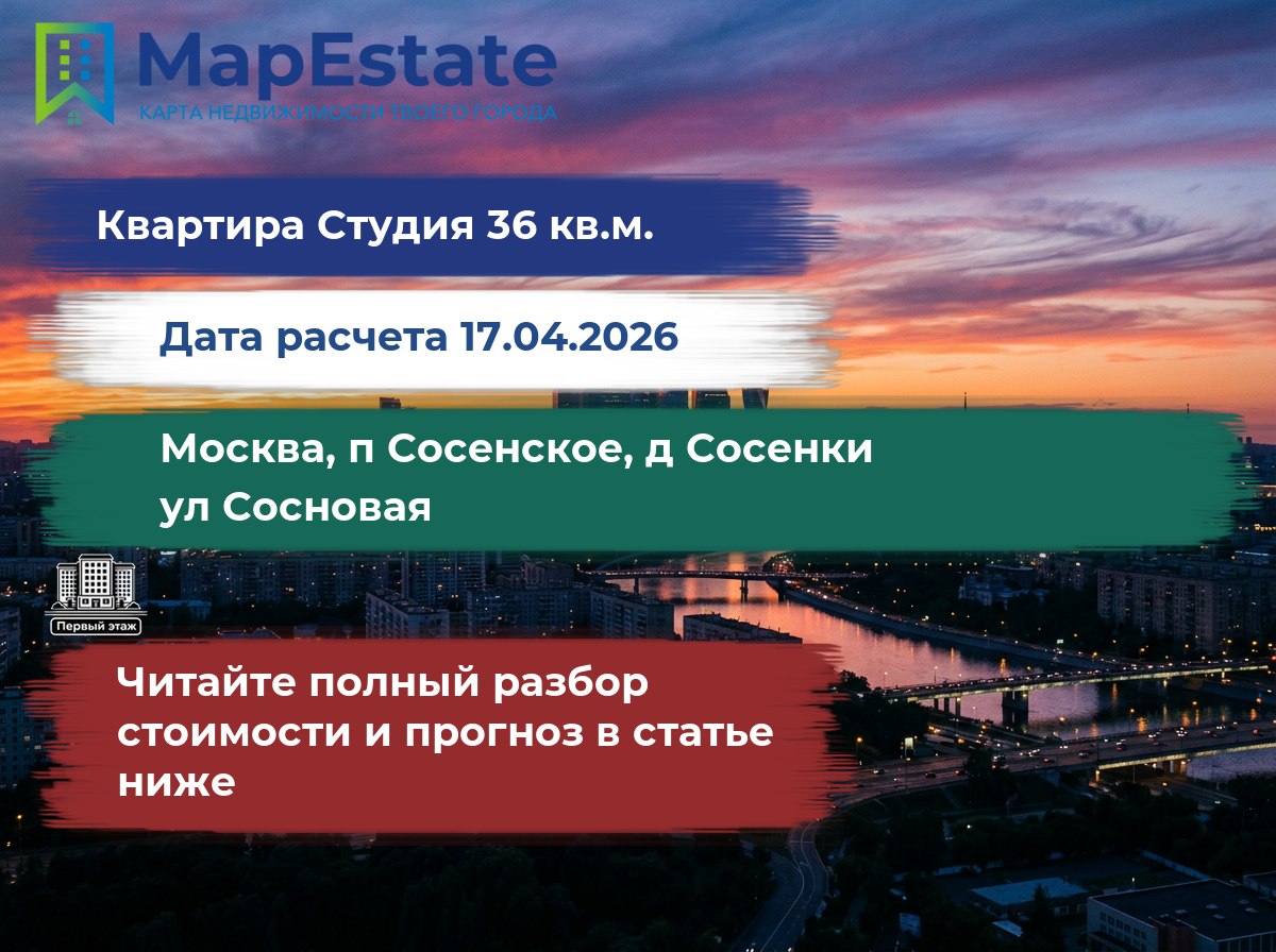 Сколько стоит квартира 36 м² в москва, п сосенское, д сосенки, ул сосновая?