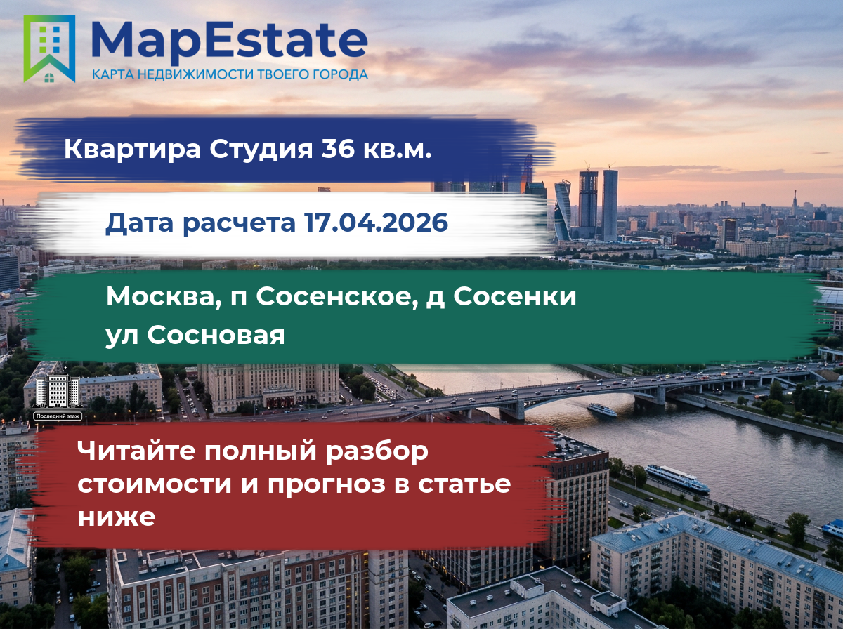 Сколько стоит квартира 36 м² в москва, п сосенское, д сосенки, ул сосновая?