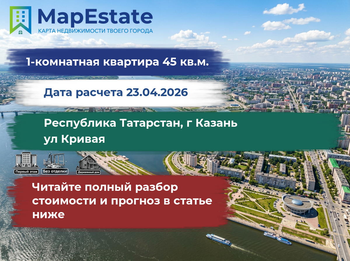 Сколько стоит квартира 45 м² в республика татарстан, г казань, ул кривая?