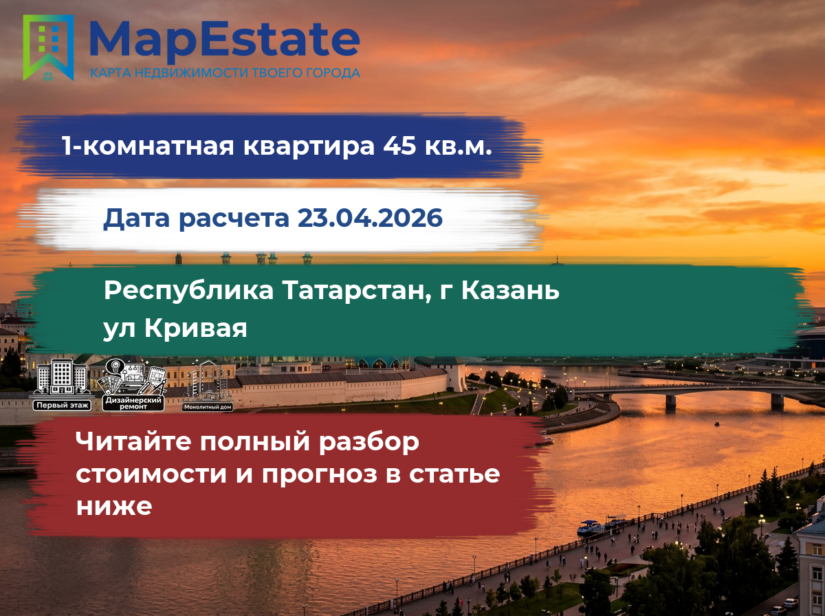 Сколько стоит квартира 45 м² в республика татарстан, г казань, ул кривая?