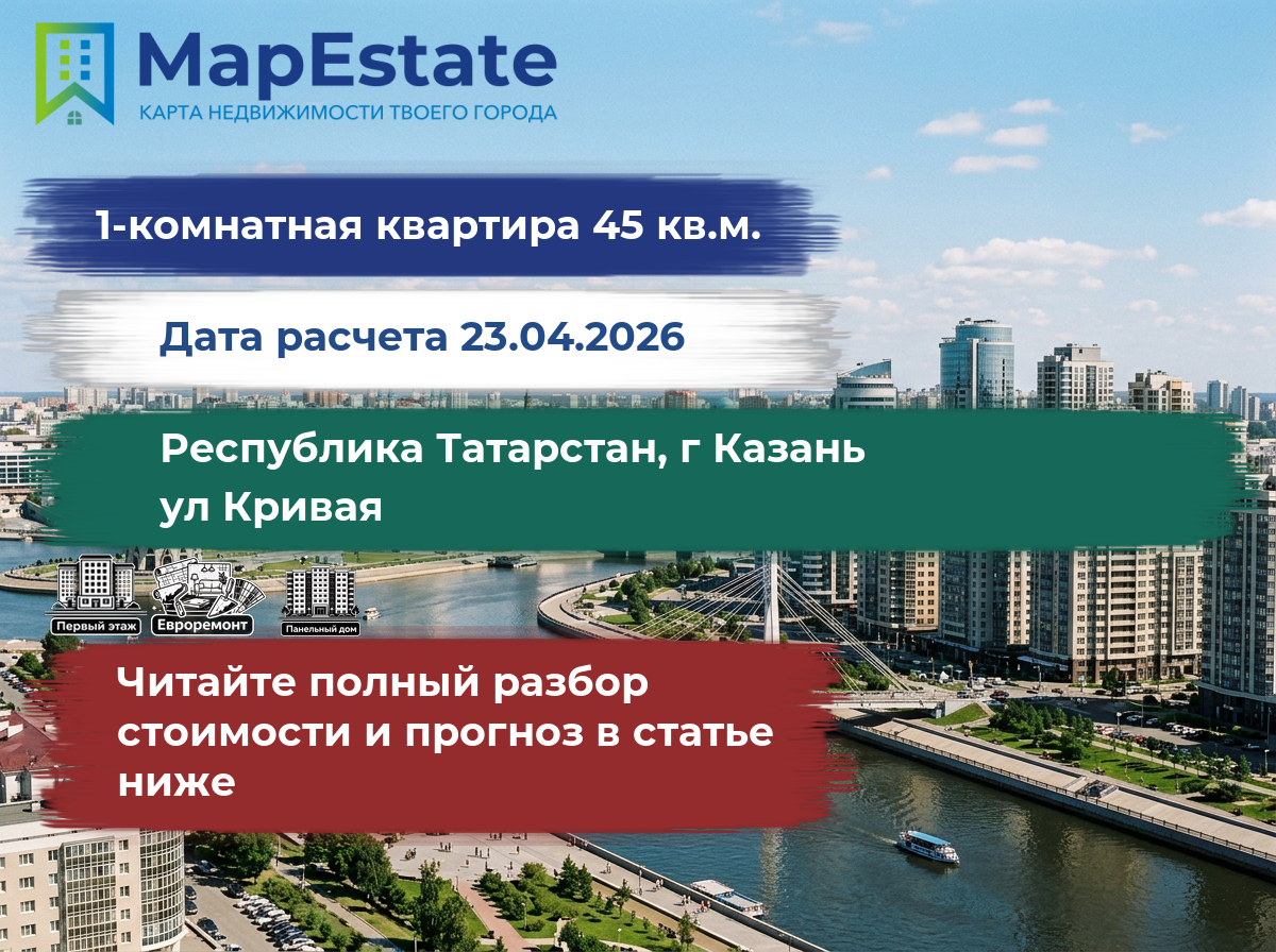 Сколько стоит квартира 45 м² в республика татарстан, г казань, ул кривая?