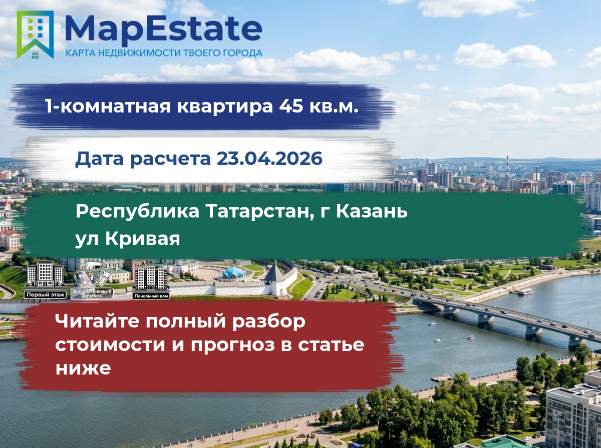 Сколько стоит квартира 45 м² в республика татарстан, г казань, ул кривая?