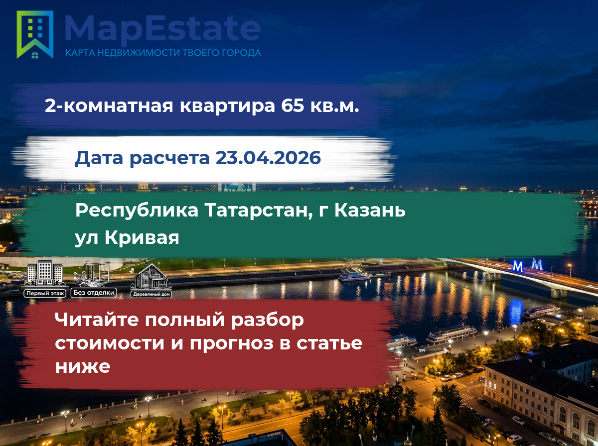 Сколько стоит квартира 65 м² в республика татарстан, г казань, ул кривая?