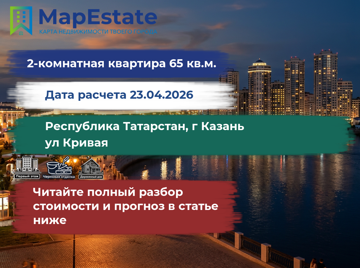 Сколько стоит квартира 65 м² в республика татарстан, г казань, ул кривая?