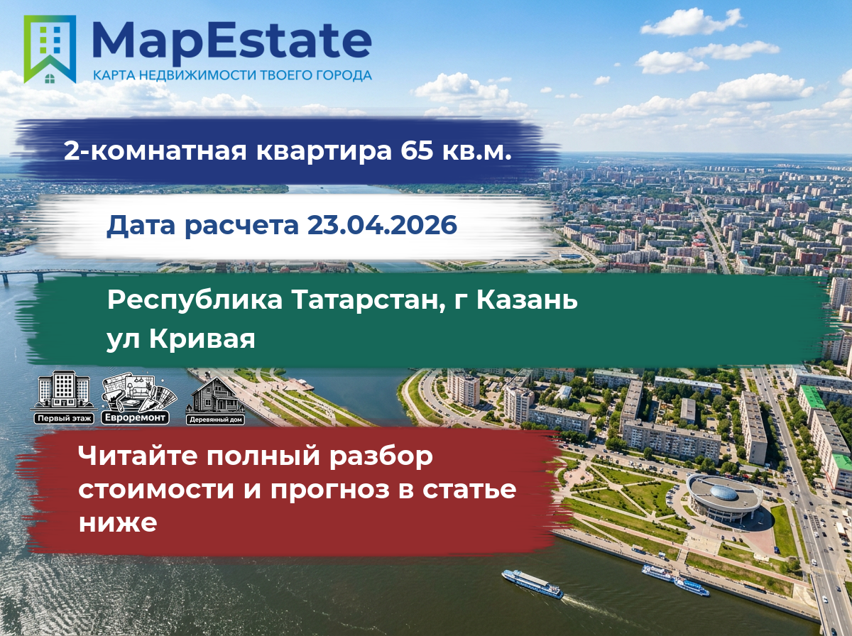 Сколько стоит квартира 65 м² в республика татарстан, г казань, ул кривая?
