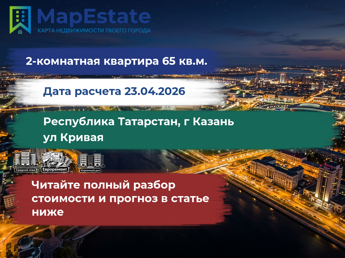 Сколько стоит квартира 65 м² в республика татарстан, г казань, ул кривая?